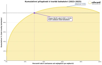 Když seřadíme výnosy všech 1 113 akcií od nejlepší po nejhorší a budeme sčítat, kolik „bohatství“ vytvořily, vyjde překvapivý obraz: