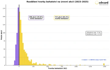 To, co vidíme na posledních třech letech, není výjimka. Studie Hendrika Bessembindera z let 1926 až 2024 ukázala, že rozdělení výnosů jednotlivých akcií je i dlouhodobě „extrémně nerovnoměrné“: